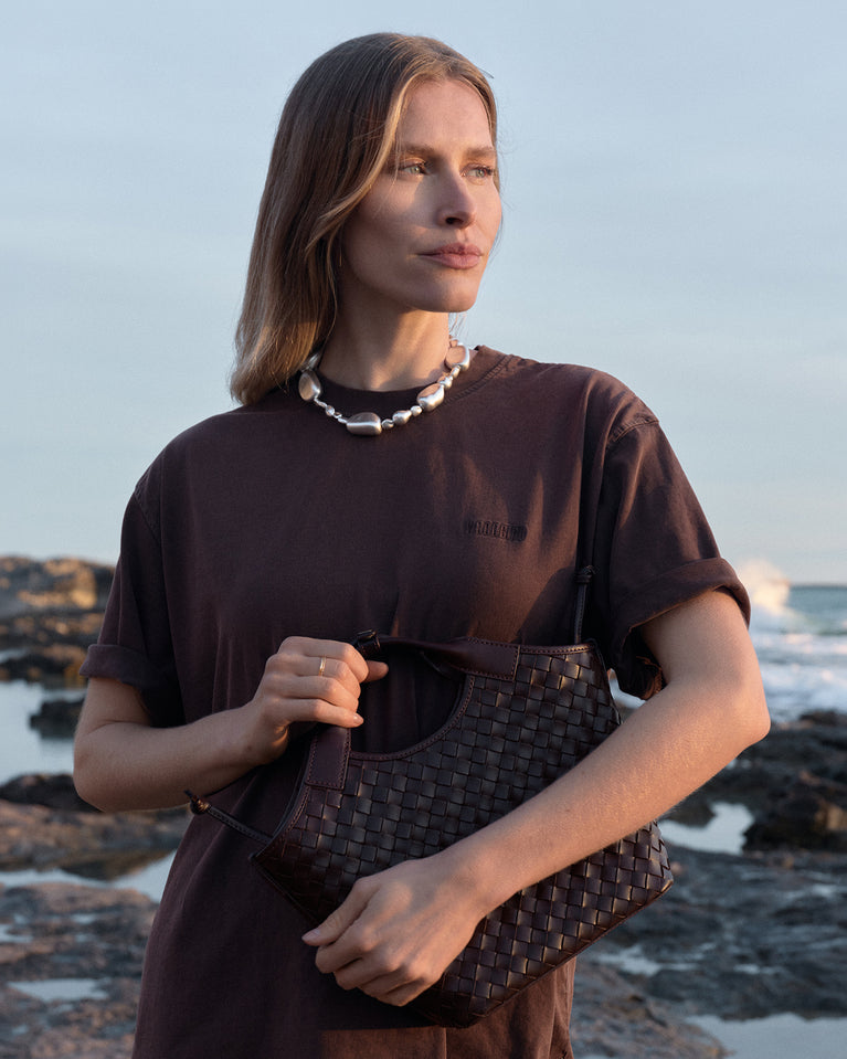 The twisted handle remains sculptural and unmistakable. Woven executions add depth and structure. Tone-on-tone stitching sharpens suede silhouettes. Every detail is crafted by hand, with uncompromising responsibility.
