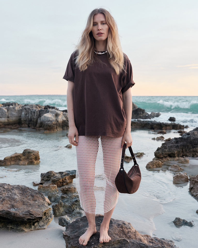 Leo Midi Shoulder Strap - Chocolate Suède with Classic Leather