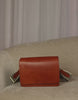 Audrey crossbody bag in cognac classic leather. Side product image.