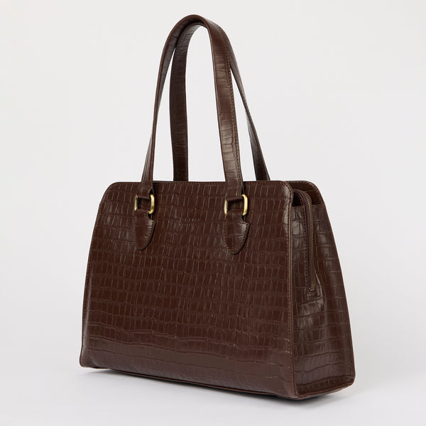 Eleganz trifft auf Effizienz – Blair in edlem Chocolate Croco Print ist für deinen Workday gemacht. Mit strukturierten Griffen und verstellbarem Crossbody-Strap für flexible Tragemöglichkeiten. Innen sorgen Laptopfach, Schlüsselclip und zwei Hauptfächer für perfekte Organisation. Blair ist dein Business-Essential mit Stil.