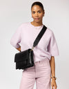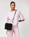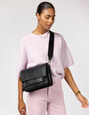 Harper Black Leather crossbody handbag. Front product image with adjustable leather strap.