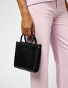 Jackie Mini - das umwerfende Mini-Me unserer Jackie. Jackie Mini ist eine kleine quadratische Tote-Bag, perfekt für unterwegs, wenn du deinem Outfit dennoch eine elegante Note verleihen möchtest. Sie verfügt über zwei innere Steckfächer, um deine Wertsachen organisiert zu halten, und einen Reißverschluss für sicheren Stil. Jackie Mini besteht aus unserem strukturierten Classic-Leder, sodass sie eigenständig steht und dabei glänzt! Jackie Mini wird mit einem abnehmbaren und verstellbaren Lederriemen geliefert, sodass sie als Crossbody-Tasche getragen oder als schickes Statement für sich alleine verwendet werden kann.