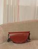Laura Bag Cognac Classic Leather. Round moon shape crossbody bag . Side product image.