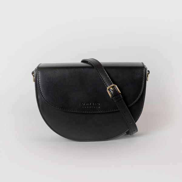 Ava saddle bag with a leather crossbody strap. Front product image.