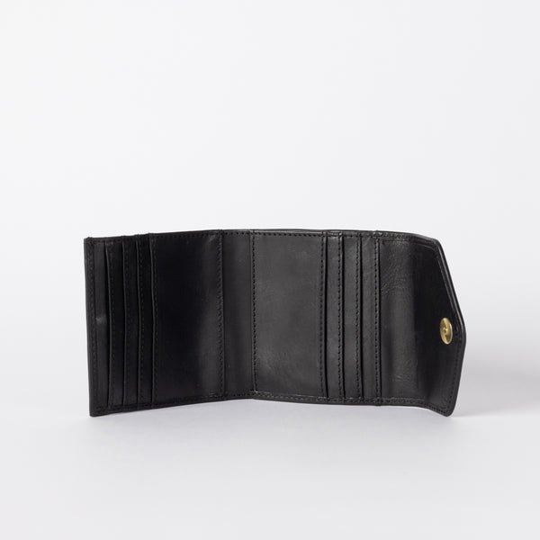 Georgie's Wallet has a magnetic closure and a compact square silhouette. Inside, there are seven card slots and a compartment for bills, while a zip pocket on the back keeps coins secure.