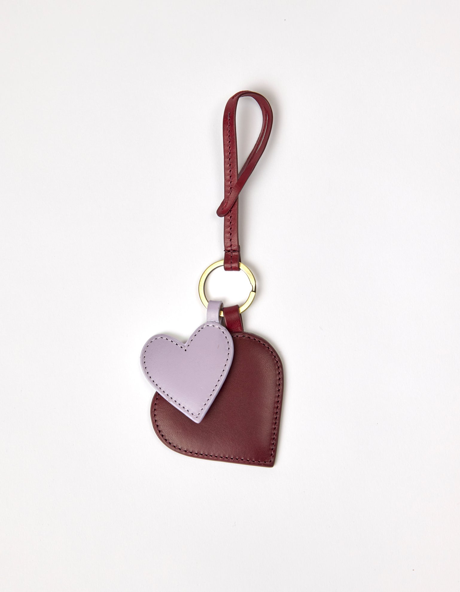 Hearts Bag Charm Ruby and Lavender | Classic Leather