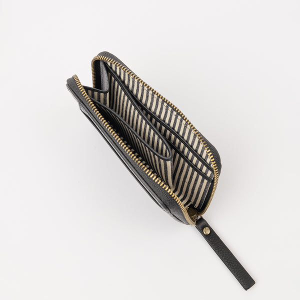The Robbie Wallet has a zip-around closure and a compact yet roomy design. It has seven card slots, two compartments for cash, and a dedicated coin pocket, ensuring your essentials are organized and easily accessible.