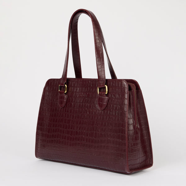 In Dark Cherry Croco Print Leather, Blair is your statement piece for bold workdays. Whether worn on your shoulder or with the detachable crossbody strap, this work bag is as versatile as it is sleek. Inside, you’ll find a padded laptop compartment, key holder clip, multiple pockets, and two roomy main compartments – perfect for your notebook, wallet, phone, and more. Blair is the polished work bag that effortlessly keeps up with your pace.