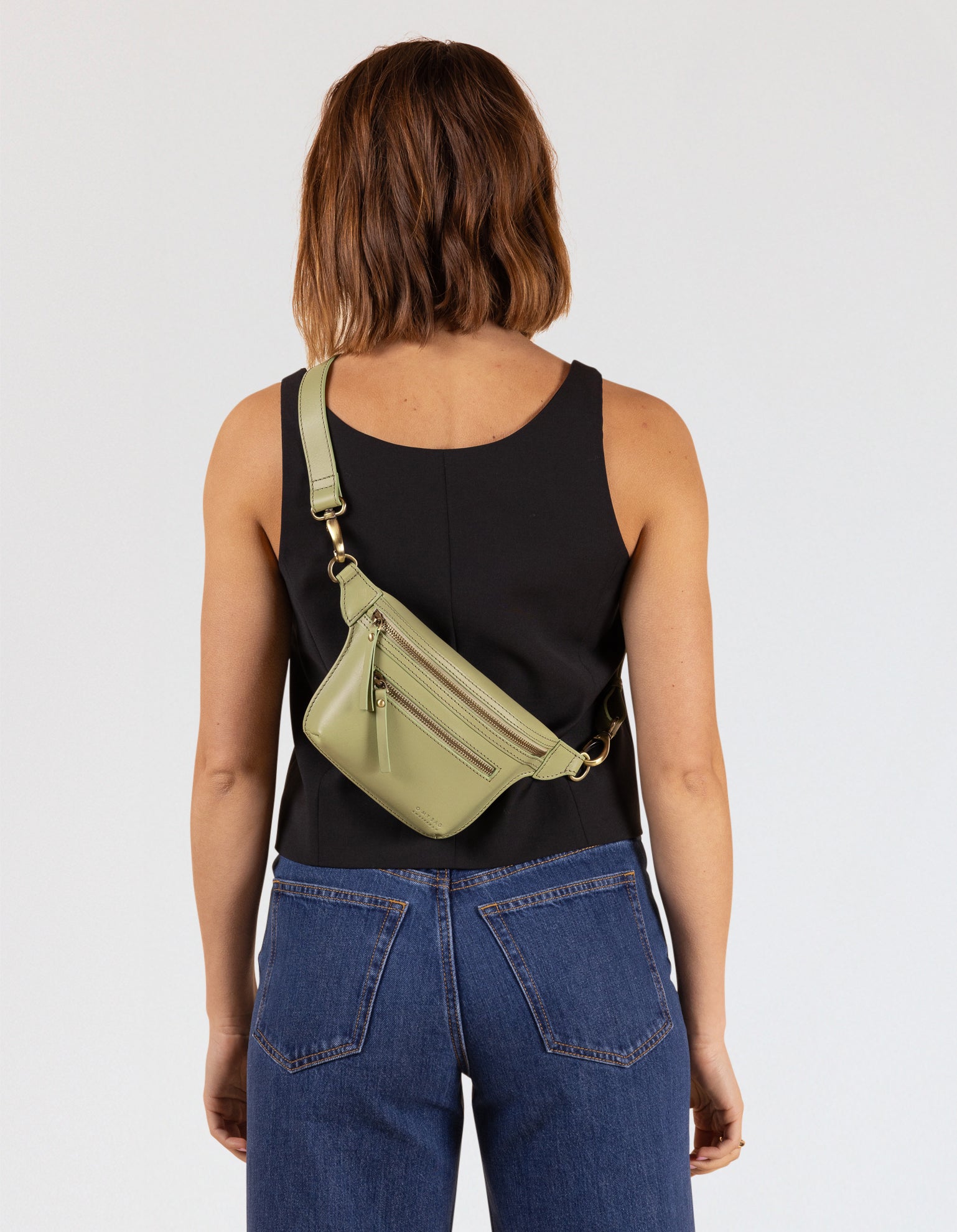 Fresh and modern, the Beck’s Bumbag in Tea Green brings a bold pop to your look. Our Beck's Bumbag is designed for ultimate versatility with internal card slots and slip zipper pockets, making it your perfect companion for festivals, parties, and everything in between. Its unique color and adjustable leather strap make it a standout accessory for any occasion. Grab this limited edition bag before it's gone forever!