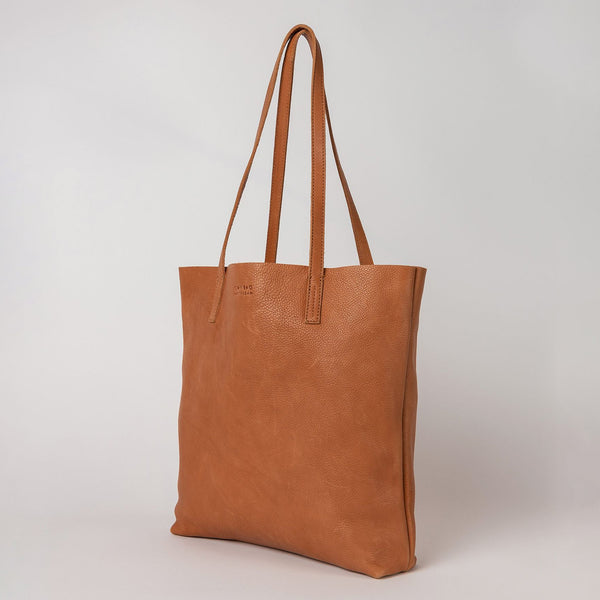 Georgia tote bag in wild oak soft grain leather. Front product image.