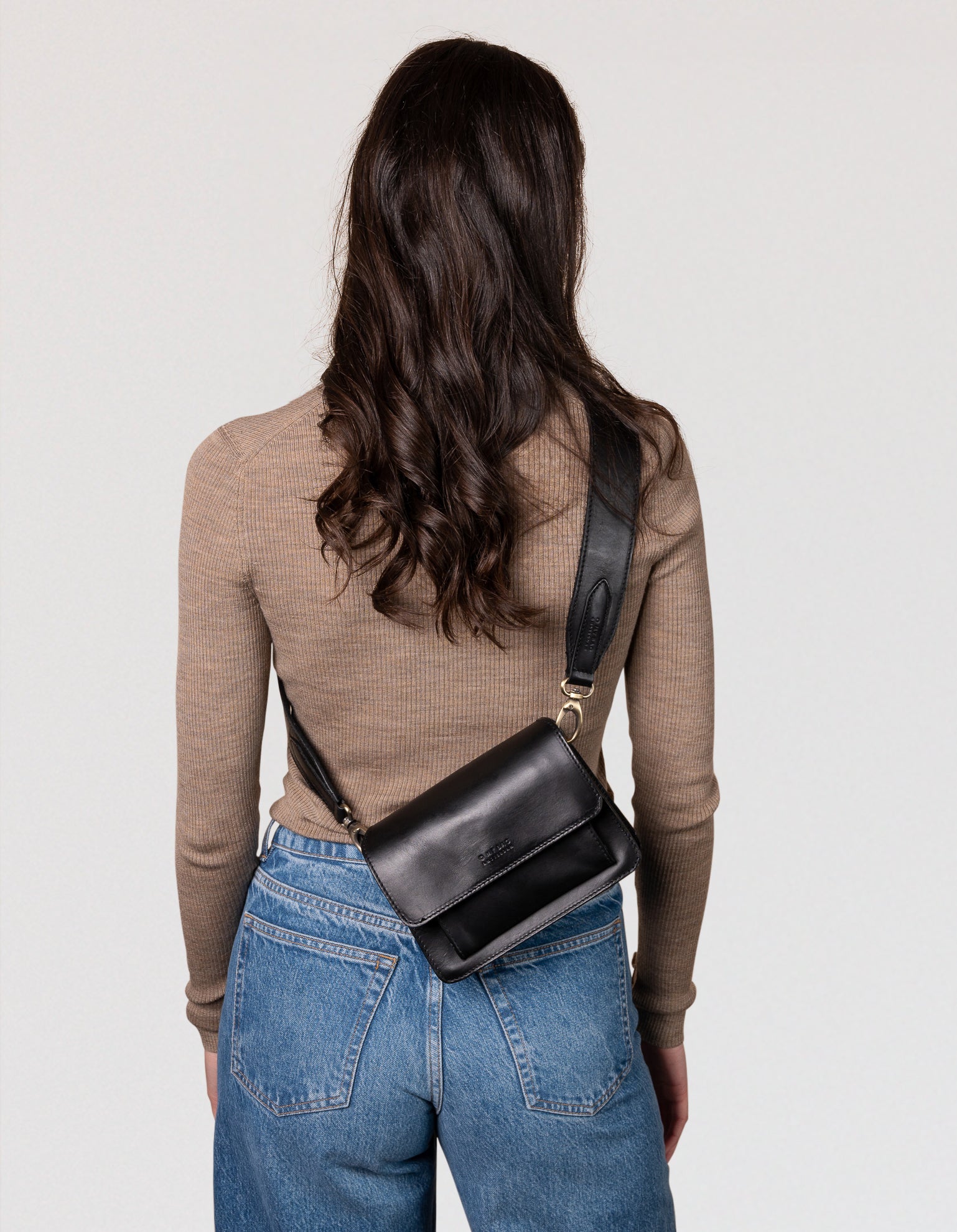 Harper Mini Black Leather crossbody handbag. Inside product image