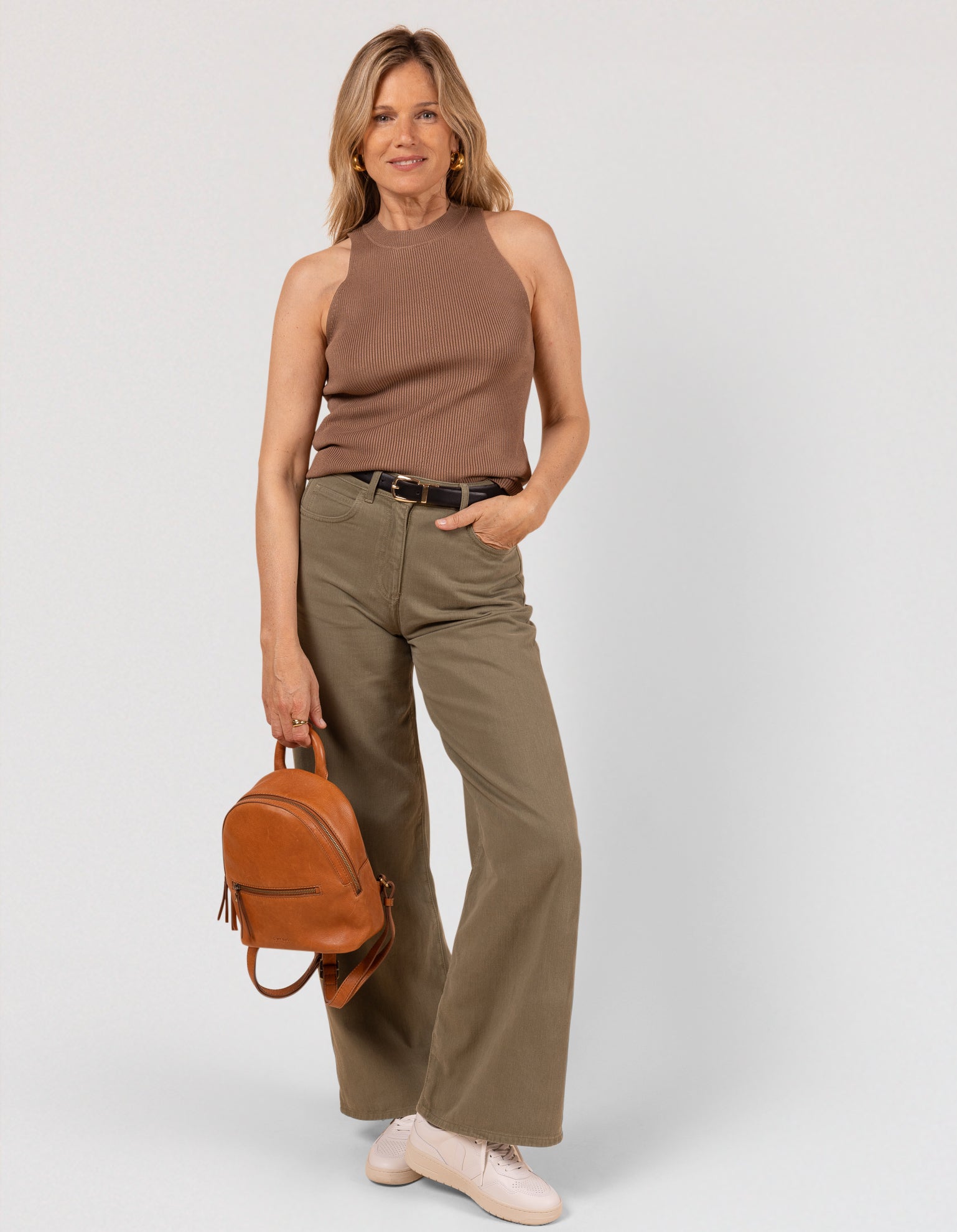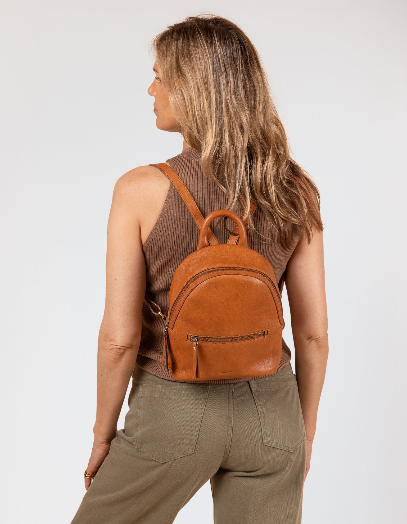 Model image showcasing Ivy wild oak soft grain leather backpack