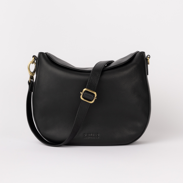 Front product image of Lana black soft grain leather crossbody bag with adjustable leather strap