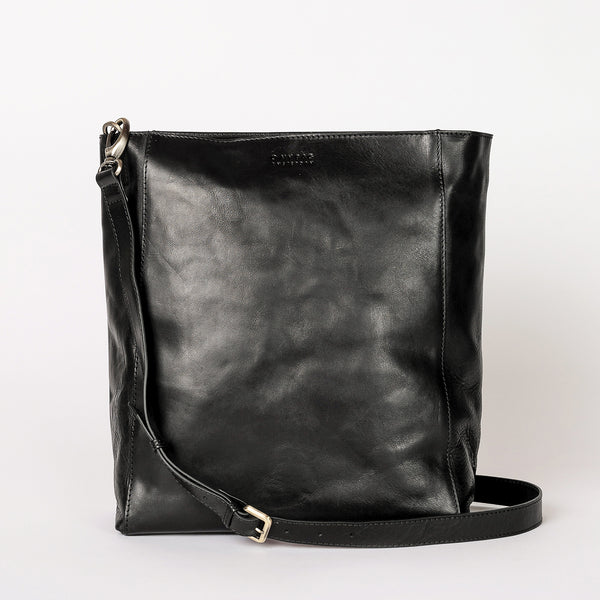 Sofia Black Leather Stromboli Leather - Long strap, female model image